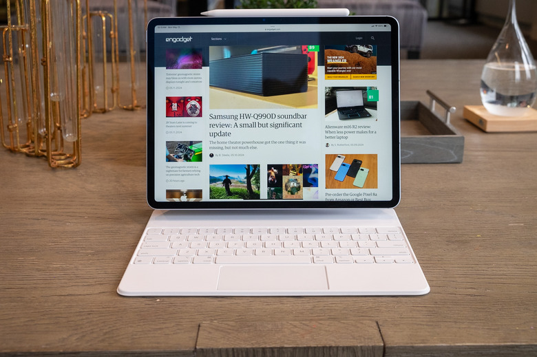 It's pretty easy to sum up what's new about the iPad Air this year. It has a faster M2 chip compared to the old M1, it works with a new Apple Pencil Pro, the front camera has moved to the landscape edge and it starts with 128GB of storage (double the prior model) at the same $599 price. These are all expected updates given that it's been two years since the last iPad Air. But with the 2024 iPad Air, Apple is also offering an intriguing new option: the first 13-inch iPad that doesn't carry the "pro" designation and associated costs. The 13-inch Air starts at $799, which is $500 less than a comparably-sized iPad Pro. (The model I tested with 512GB of storage and 5G costs $1,249.)