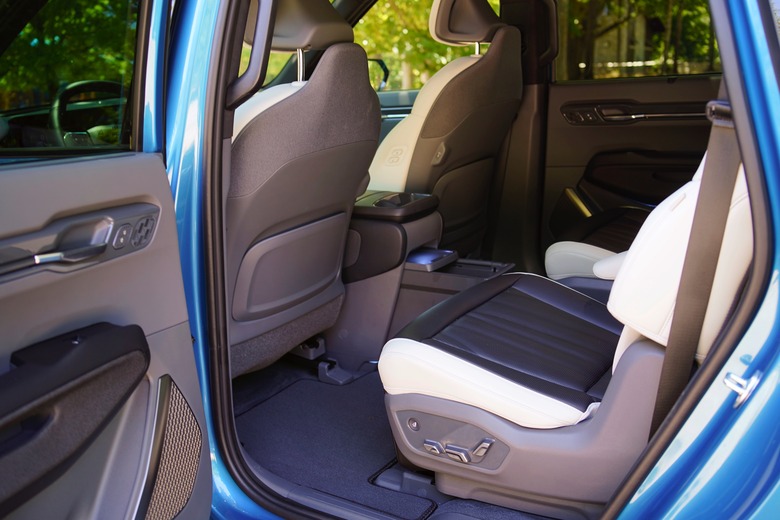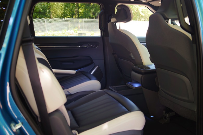 The EV9's second row captain's chairs are just as comfortable as the front seats, but they have cushioned headrests instead of flexible mesh. As much as I like the second row, though, my family would likely be better off with the 7-seat arrangement from Light or Wind EV9 models. Those rely on a bench seat instead of two captain's chairs, which my wife prefers when she needs to ride beside my two-year old.