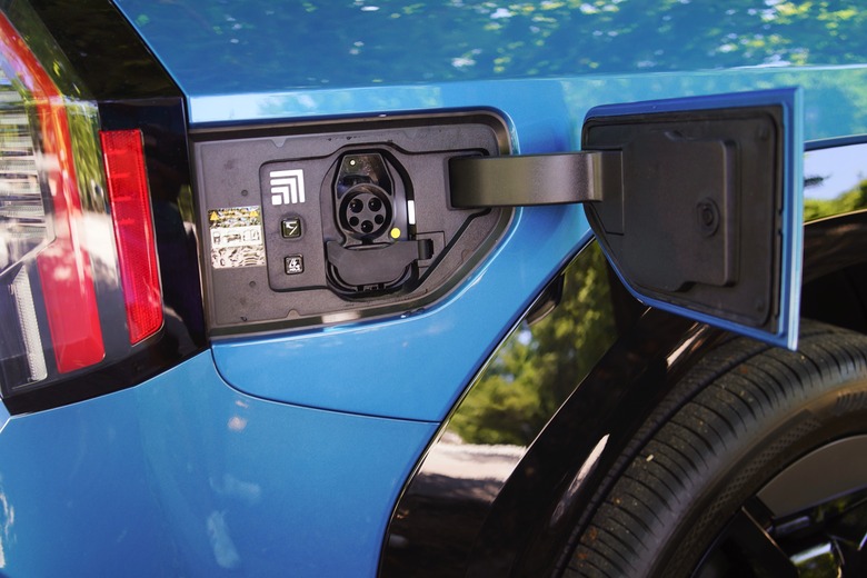 I don't have a Level 2 charger at home, which could completely juice up the EV9 in six to seven hours, but I was able to plug it into a Level 1 charger using a standard 120V outlet overnight. That typically added an additional 10 to 15 percent of charge after eight to 10 hours. This level of charging may not be feasible for the long term, but it's helpful if you don't have the ability to add a Level 2 system at home, or if you're traveling and need to add a bit more juice to reach the next fast charger.