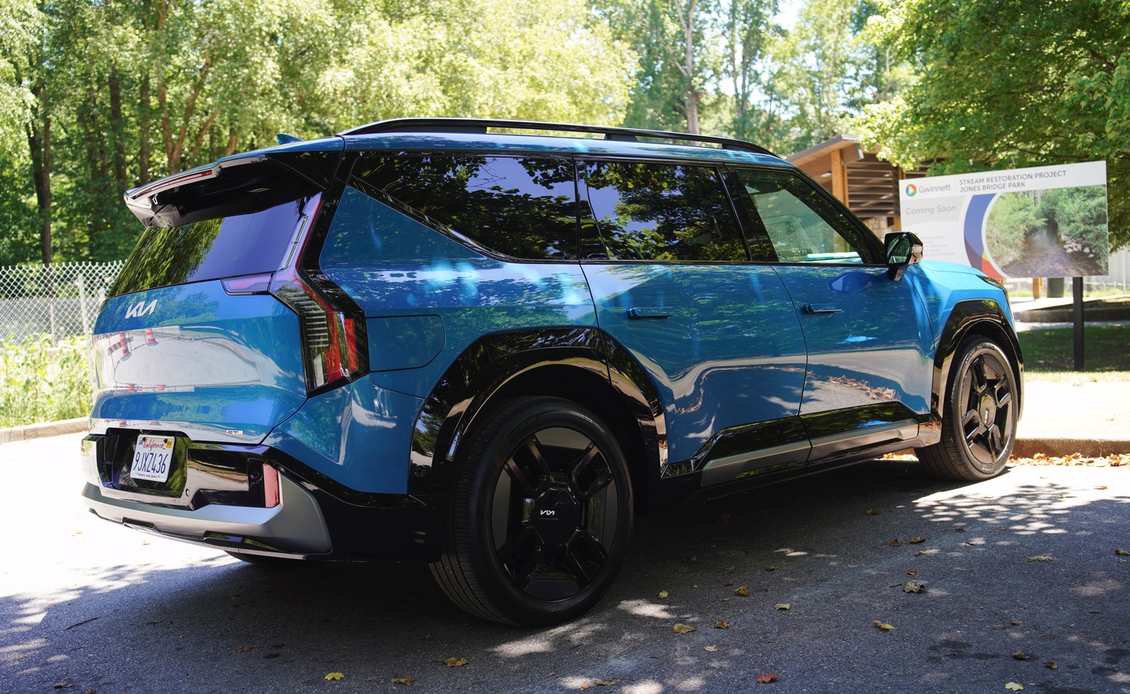 I didn't have much trouble parking the EV9 in most lots, but backing out of spaces could sometimes be painful. That was particularly true in locations designed for smaller cars–I'm looking at you, Trader Joe's. It took me six bouts of reversing and precarious turning to make it out of one spot at my local Regal Cinema. Even then, I could only leave in one direction, thanks to a slew of other large cars (including a particularly ugly Cybertruck) sitting around me.