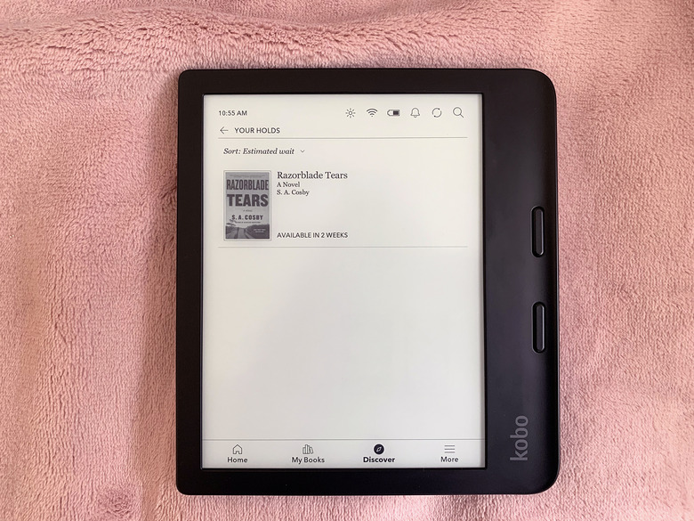The answer is yes – mostly. (I still scroll sometimes, I'm but a mere mortal.) Saving articles to Pocket throughout the day is super easy and I can turn to them at night when I have more time to read. But the kicker for me is Overdrive, which I can browse directly on the Libra 2 and borrow titles from my library with just a few taps. I also use the Libby app in conjunction with this – when Libby and my Libra 2 are signed in with the same library card, any e-book I borrow via Libby automatically shows up on my Libra 2 like magic. Holds also show up on the e-reader with the amount of time I have left to wait; once it's my turn, a cute little "borrow" button pops up, allowing me to get reading almost immediately. While Amazon's Send-to-Kindle feature is also an easy way to get library books from Libby to a Kindle, I find this direct integration more convenient.