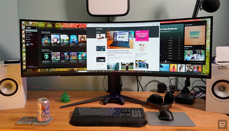 Given that 27-inch 5K screens like Apple's Studio Display sell for $1,599, the 49-inch UltraGear's $1,300 retail pricedoesn't seem so bad. But with great 16:9 gaming monitors going for around $300, it's still a hefty price to stomach. And if you're ready to pay more than $1,000 for a monitor, it may be worth holding out for an OLED screen that can deliver better contrast. (The Alienware 34-inch QD-OLED is now available for $900 with AMD's FreeSync Pro, while LG's UltraGear 45 ultrawide OLED goes for a whopping $1,700.)