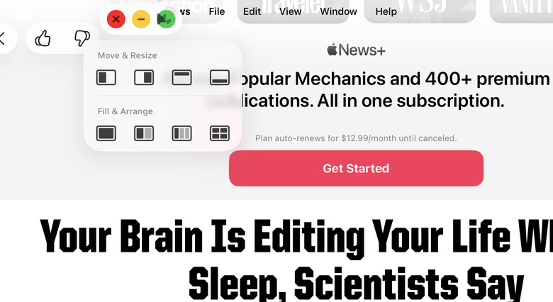 The expanded window tiling controls here also make that easier. If you press and hold the stoplight buttons, you'll get more options to resize apps to take up a quarter, third or half the screen; you can also grab drag bars to further adjust how much space each app takes up. I really liked a mode where three iPhone-sized apps fill the screen, and when there was something I wanted to devote more focus to, I just hit its green button and went full screen.