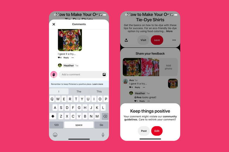 Separately, Pinterest also unveiled new comment moderation features, which will encourage users to leave more positive comments and warn when a message may break the company's rules. The feature is similar to tools used by Instagram and TikTok, which also have the ability to proactively warn users before they post rule-breaking comments.