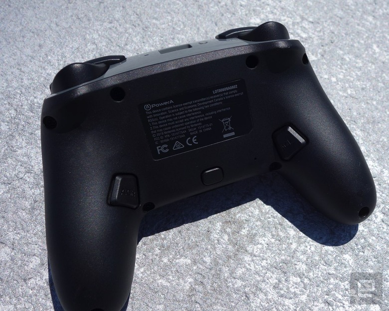 The PowerA Nano is basically a beat-for-beat recreation of Nintendo's own Pro Controller, with the same basic color scheme and button layout but in a gamepad about two-thirds the size. One other key difference is on the underside of the gamepad, where you'll find two programmable buttons marked AGR and AGL. They can save you a lot of time in games where reaction speed is critical, since your middle fingers would naturally be resting on them all the time. (They're especially helpful in Splatoon 2 for launching your special weapons.) As with the official Nintendo Pro Controller, the Nano uses a USB-C port for charging; PowerA's other gamepads use AA batteries instead. This means you can plug it right into the dock with the included USB cord so it always stays powered up.