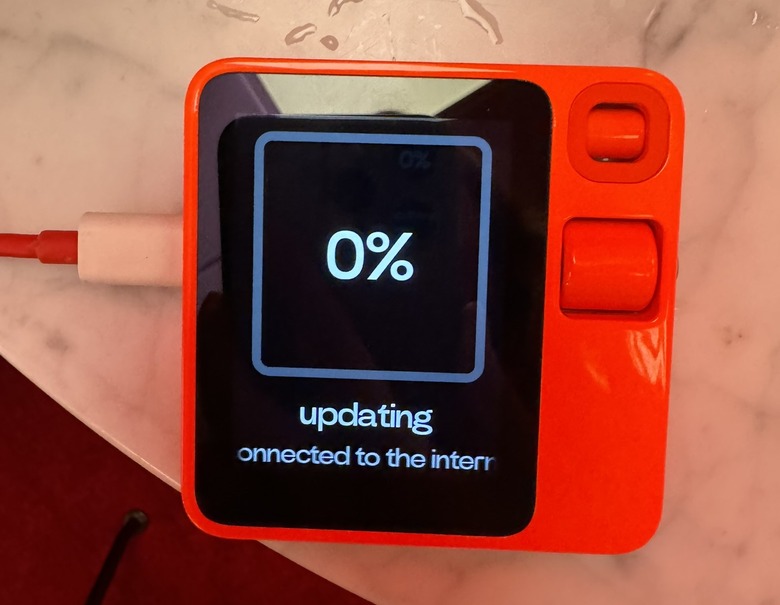 The R1's advantages over the Pin don't end there. By virtue of its integrated screen (instead of a wonky, albeit intriguing projector), the orange square is more versatile and a lot easier to interact with. You can use the wheel to scroll through elements and press the button on the right side to confirm a choice. You could also tap the screen or push down a button to start talking to the software.