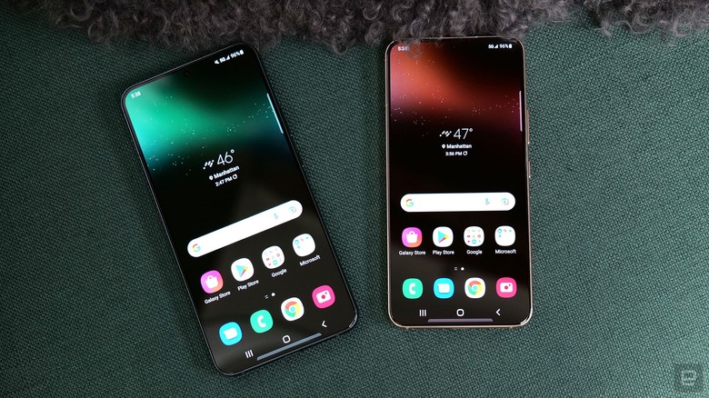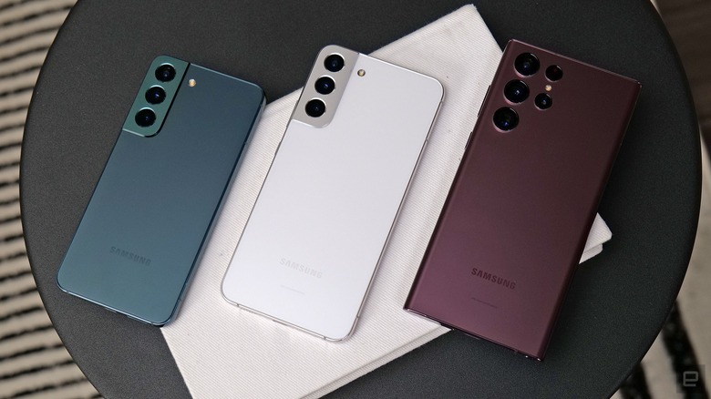Elsewhere, both the S22 and S22+ feature flat–not rounded–displays made from Gorilla Glass Victus+, a chassis constructed out of Samsung's Armor Aluminum alloy, a 40-megapixel center-mounted selfie shooter and three rear cameras: a 50MP wide, 12MP ultra-wide and a 10MP telephoto with a 3x zoom. So not a huge change, but it's not like the S21 needed a complete revamp anyway. At the same time, it's important to note that at 6.1 and 6.6 inches, respectively, both the S22 and S22+ have slightly smaller screens than their predecessors. And before you get your hopes up, none of the new S22s have a headphone jack or an SD card reader.