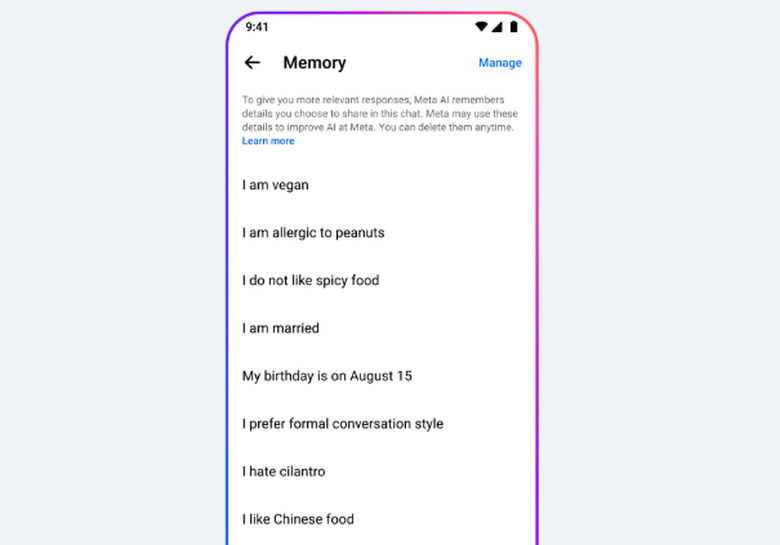 With the change, which will initially be available to the US and Canada, Meta AI will be able to track your preferences based on information you share in chat with it. In a blog post, the company uses the example of food allergies and other dietary restrictions so meta AI will "remember" to recommend recipes that fit your requirements.