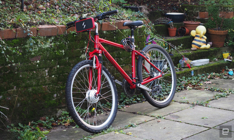 It also seemed the ideal moment to try Swytch, a product I'd been interested in for several years at this point. The company produces a retrofit e-bike kit that can be easily bolted onto existing bicycles, giving them a new lease of electric life. All you need to do is swap out the front wheel for a new one with a built-in 250W electric motor, which comes with a battery, pedal sensor and controller. Now, depending on your patience and budget, you can snag a Swytch kit for around £450 ($550 before tax), although it's commonly more expensive. That said, a Swytch kit and an analog bicycle is often far cheaper than all but the most basic (and ugly) of new e-bikes.