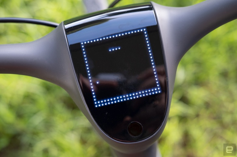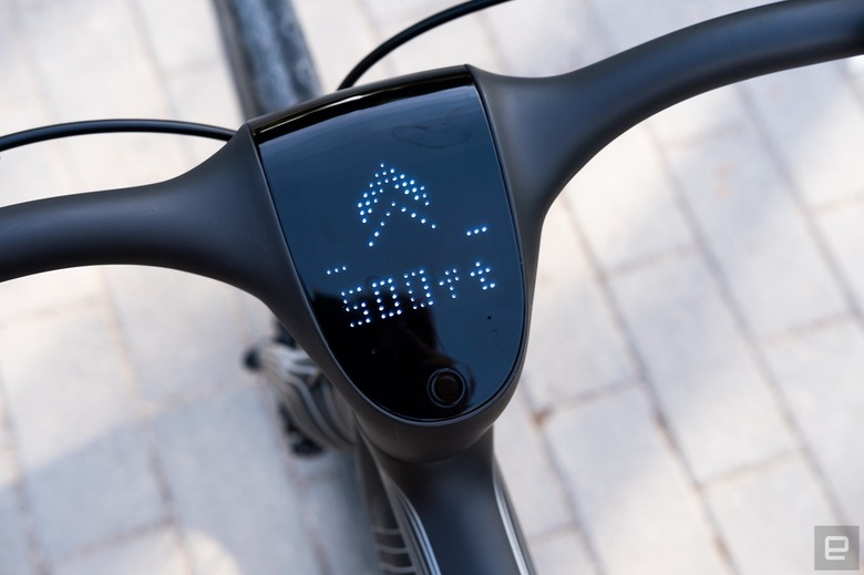 Something much easier to evaluate is the onboard navigation. Or rather, the ability to punch a destination into the app, and then have visual and audio turn instructions via the speaker and display on the handlebars. There are, of course, other ways to do this – either with a phone in a mount or maybe just in your pocket with audio instructions via headphones. But having it here right in the handlebars feels a lot more futuristic and means you don't have to expose your phone to the elements/thieves.