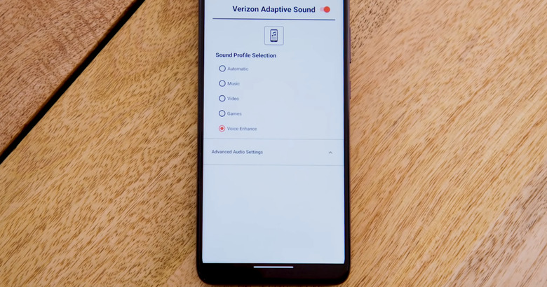 Play any music, video or a game and Adaptive Sound will optimize the content for your device automatically, according to Verizon. You'll be able to adjust some settings, such as treble, bass, spatial and voice options. You'll have sound profiles to pick from too.