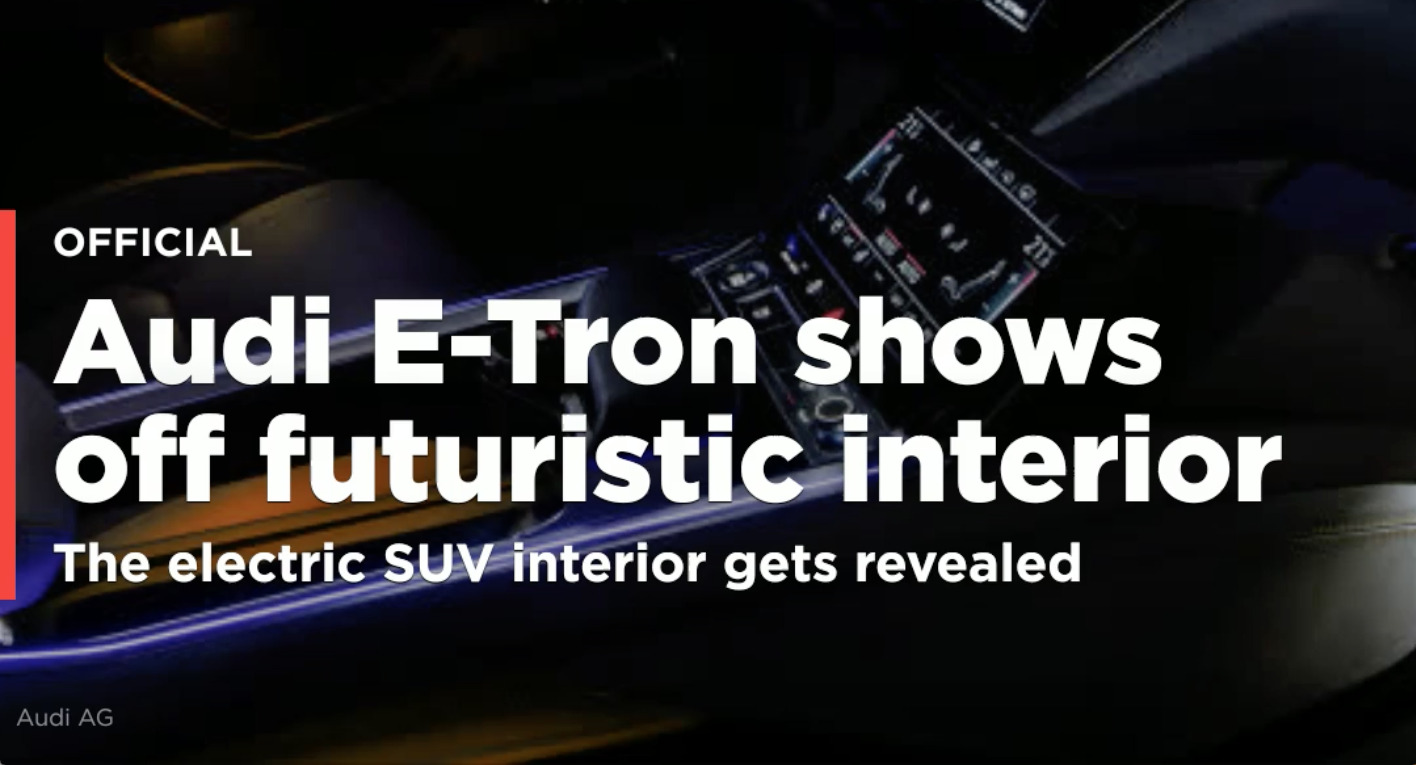 The folks at Auditography got a look at the interior of the E-Tron and shared it in a new video, above. The system is also shown in glimpses in a video Audi posted on Facebook showing the still-camouflaged SUV zipping around Copenhagen, which we've embedded below.