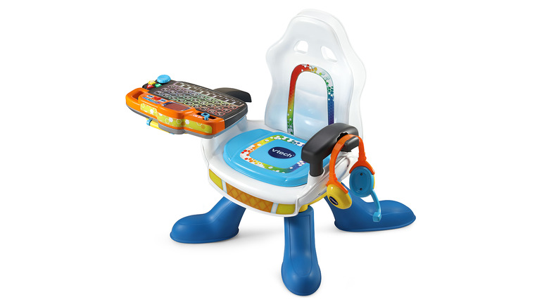 Because this is VTech after all, the Level Up Gaming Chair has some interactive electronic parts, namely a light-up keyboard that kids can play with to learn numbers and letters and even piano keys — which we admit, is actually a step up from traditional mechanical gaming keyboards. The keyboard console can be detached for on-the-go play, and the tray it normally rests on can be used for snack time as well so kids never have to leave their gaming throne when it goes on sale this fall. (We recommend pairing it with Fisher Price's Laugh and Learn Controller.)